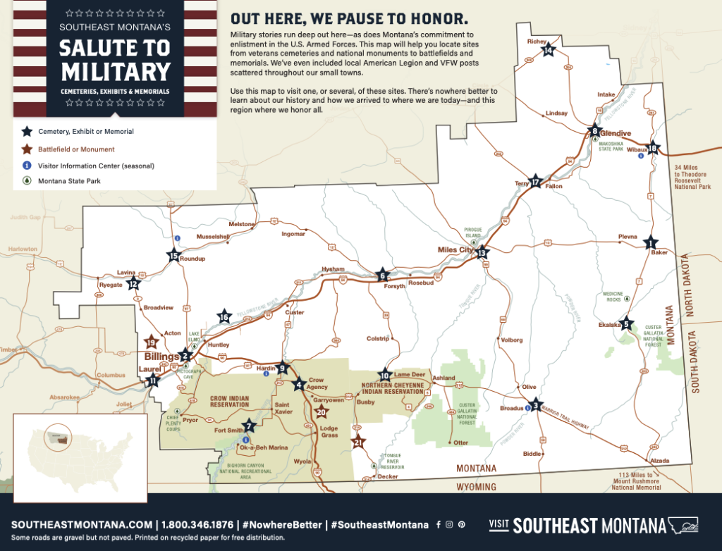 But it’s not just museums where you’ll find military history honored. Cemeteries, VFWs, American Legions, national monuments and battlefields are scattered across the landscape in Southeast Montana to give those passing through a chance to reflect. Out here we make sure to honor those who have served in the different branches of the U.S. Armed Services.