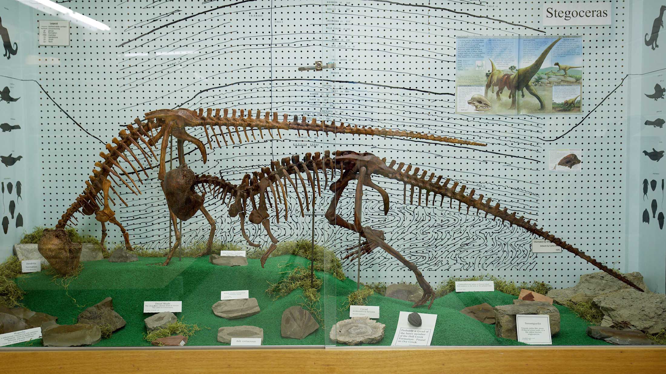 Start at the Frontier Gateway Museum on State Street—one of the first official stops on the Montana Dinosaur Trail, and a great place to pick up your Dinosaur Trail passport. The museum’s star resident is Margie, a full-size cast skeleton of a Struthiomimus found near Glendive in the early 1990s. Lean, fast and ostrich-like, Margie was a Cretaceous-era sprinter capable of reaching 50 miles per hour—a very different kind of Montana wildlife. Beyond Margie, the museum’s fossil collection includes Triceratops, Thescelosaurus, hadrosaurs and aquatic fossils, all recovered from the Hell Creek Formation that surrounds the town.