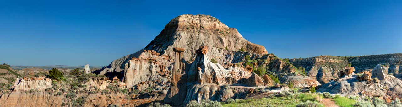 Hit the Cap Rock Trail for a short but rewarding hike to one of the park’s most photogenic formations. If you have more time, the Diane Gabriel Trail loops through the badlands grasslands and climbs to a fossilized hadrosaur on display along the trail. Wildlife watchers should scan the canyon walls for golden eagles, turkey vultures and mule deer, all common in the park.